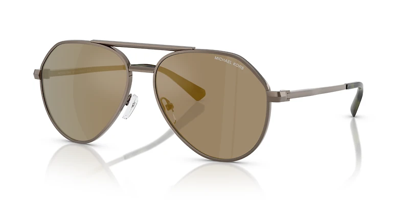 Elevate your look with the Michael Kors MK1168 Brentwood sunglasses. Designed with classic pilot frames in a lightweight metal build, they embody timeless sophistication. The green lenses, treated with a mirrored finish, protect against intense light and glare while adding a metallic edge to your style. Adjustable nose pads ensure a comfortable fit all day long. Finished in a sleek green hue, these Michael Kors sunglasses are your perfect blend of practicality and premium elegance.