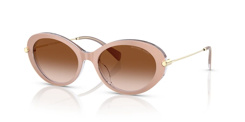 Elevate your everyday style with the Michael Kors MK2245U Rockaway sunglasses. The oval frames, crafted from sleek acetate, showcase soft contours that strike a timeless yet elegant balance. A refined beige front pairs effortlessly with metal temples, offering both durability and sophistication. These beige sunglasses feature gradient brown lenses that not only provide advanced UVA/UVB protection but also create a warm, flattering finish. Perfectly designed with a sunglasses' universal fit, these full-rim Michael Kors sunglasses blend comfort and versatility seamlessly.