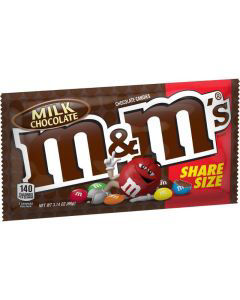 Enjoy this M&M's Milk Chocolate King Size, a classic and delightful treat. This shareable-sized candy has milk chocolate and a colorful candy shell. It contains milk and soy and may contain peanuts. It is also perfect to add to baked desserts, top ice cream, fill candy bowls, or share with your friends and family.