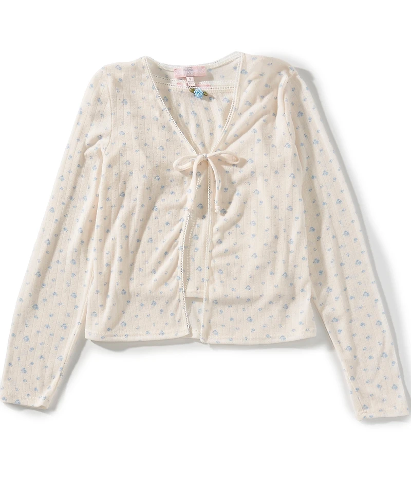 Moa Moa Big Girls Pointelle Ditsy Floral Print Tank Top & Cardigan Sweater Set