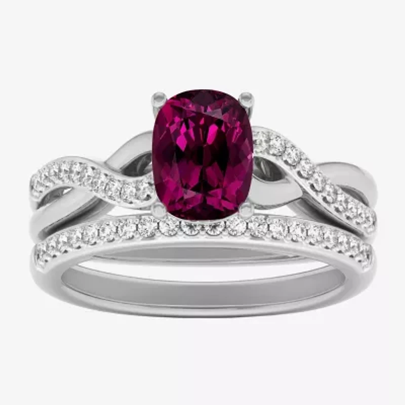 Modern Bride Gemstone Womens 1/3 CT. T.W. Genuine Red Garnet 10K White Gold Cushion Side Stone Crossover Bridal Set
