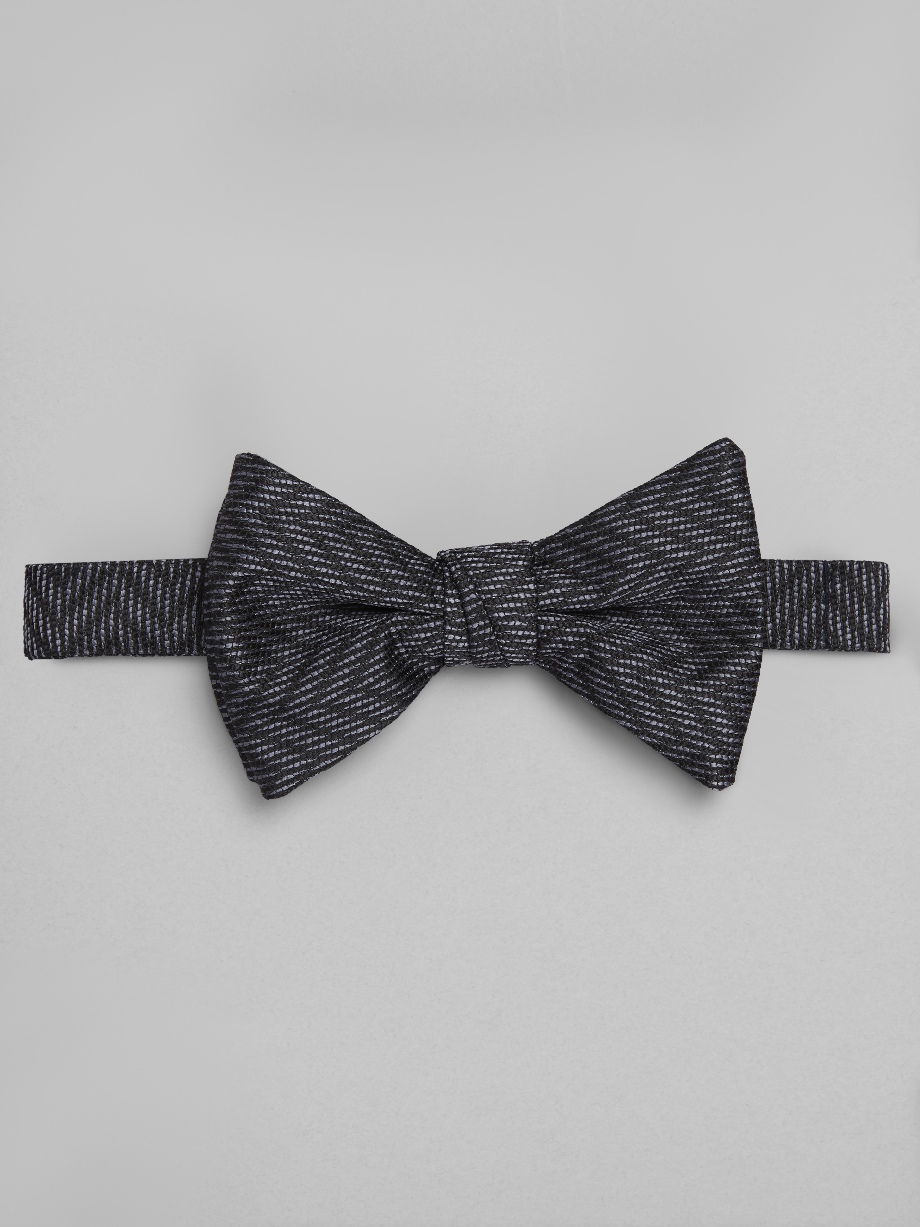 A fresh take on a classic accessory, this Egara bow tie features a modern chevron pattern that adds subtle texture and style to your favorite looks. Pre-tied and fully adjustable, it brings a contemporary edge to formal or dress wear while maintaining timeless appeal.