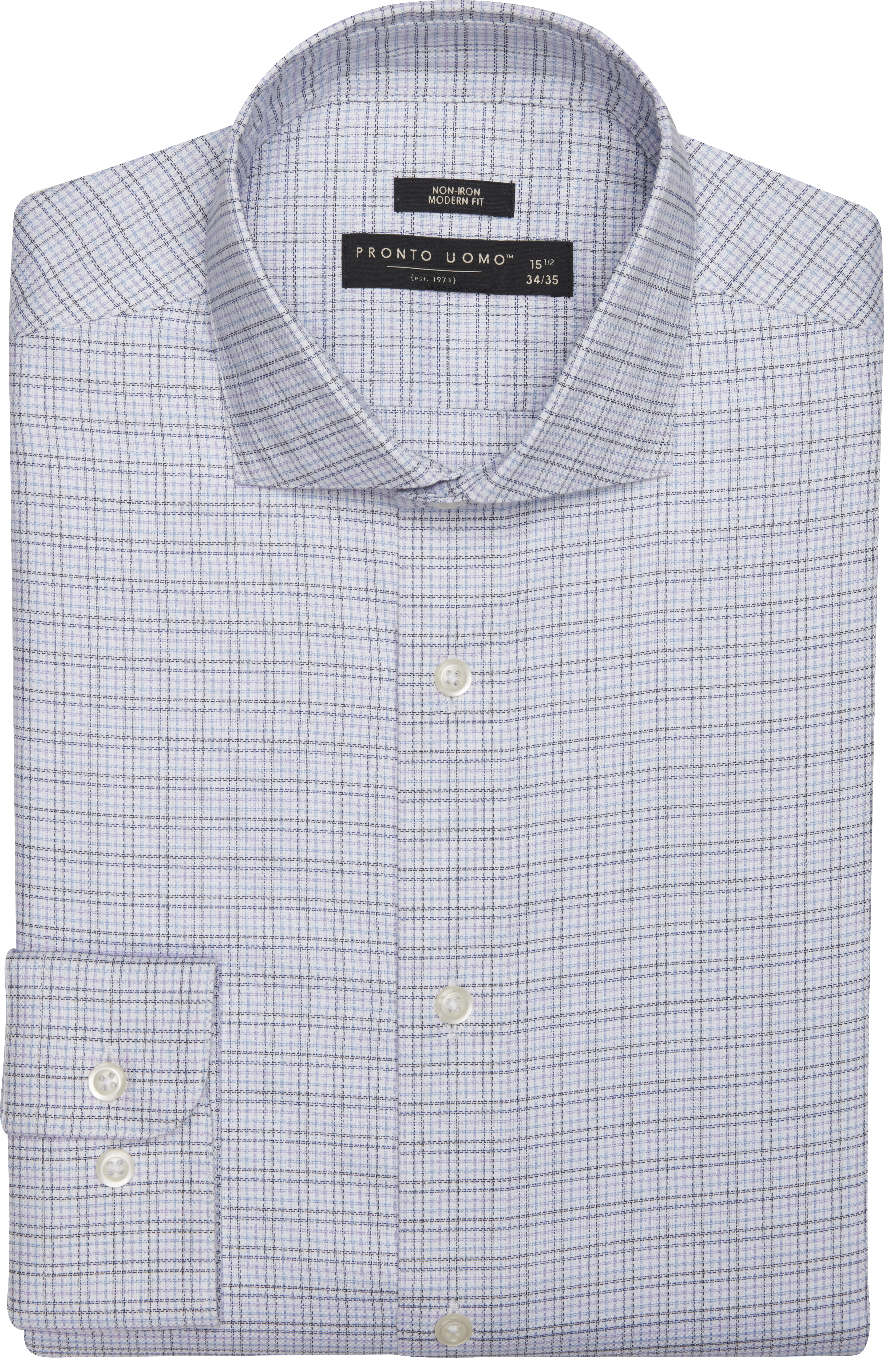 Refresh your dress-wear collection with this Pronto Uomo dress shirt that offers an updated take on classic style. With its intricately woven multi plaid design, Modern Fit, and non-iron finish, you can create a wealth of on-trend, easy-care looks.
