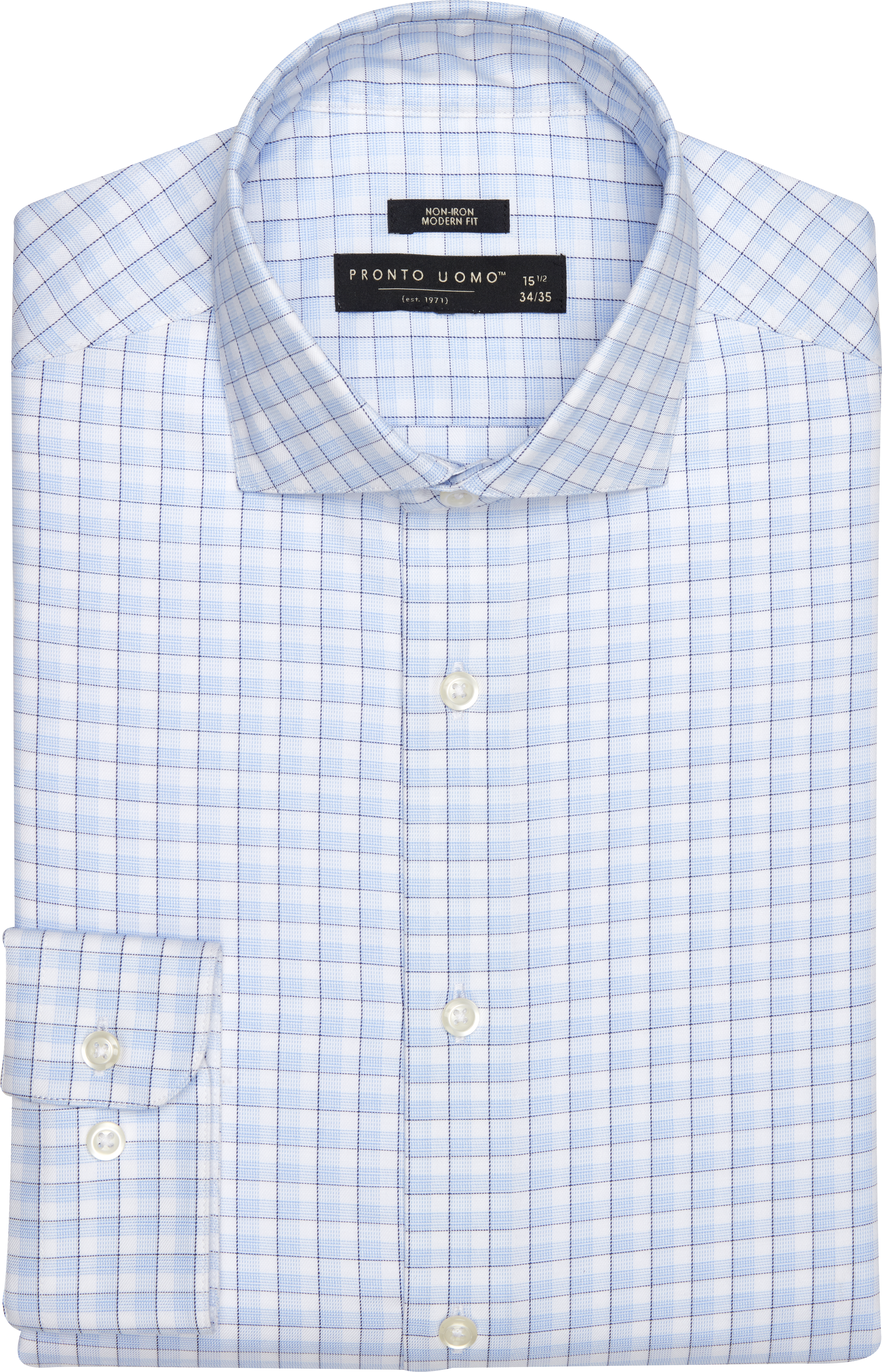 Refresh your dress-wear collection with this Pronto Uomo dress shirt that offers an updated take on classic style. With its tonal plaid pattern, Modern Fit, and non-iron finish, you can create a wealth of chic, polished looks that are easy to care for.