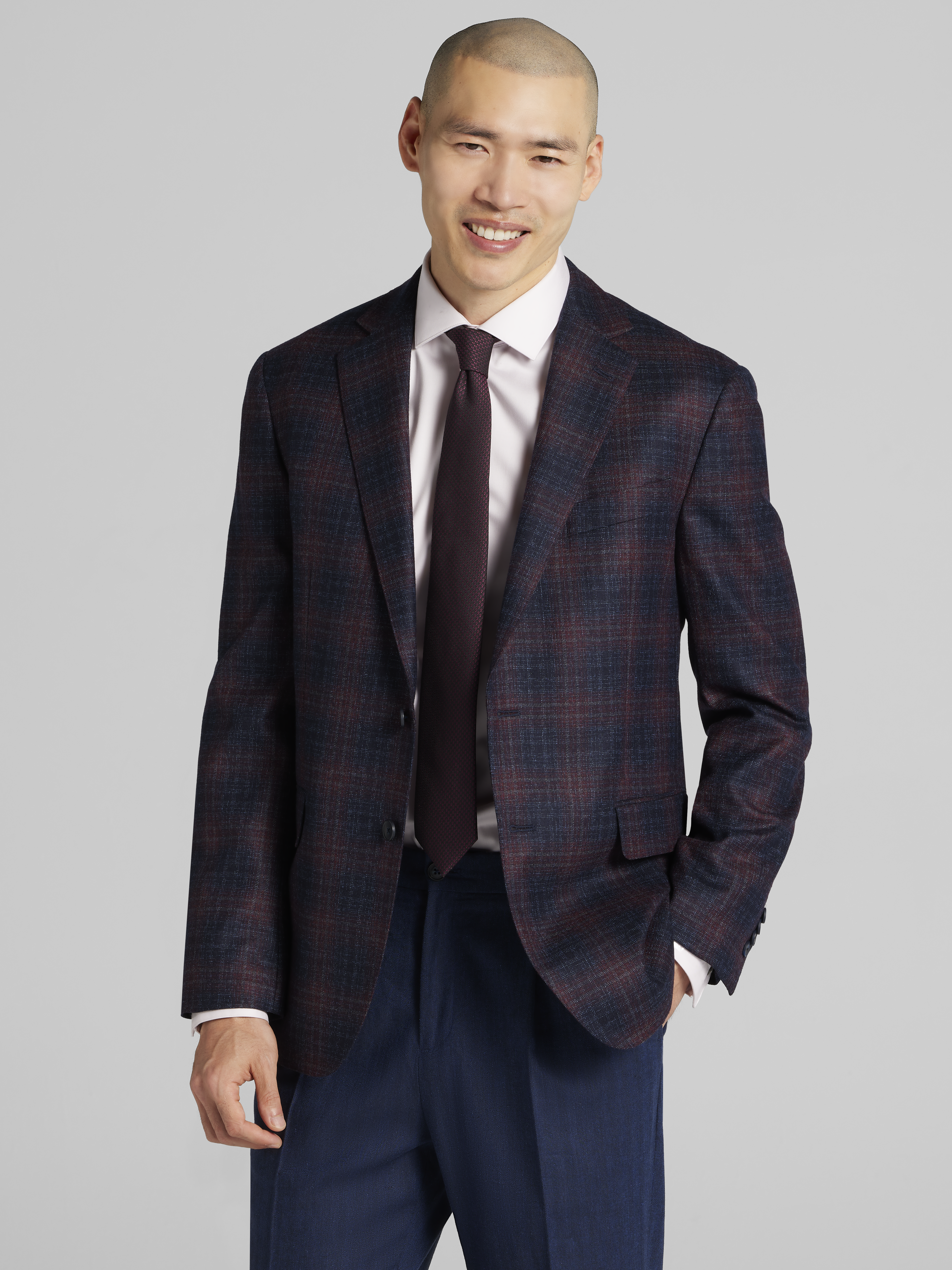 Elevate your style with this Joseph Abboud sport coat, a testament to superior craftsmanship. Expertly woven from 100% virgin wool, it offers unparalleled softness, natural resilience, and a distinguished feel that sets it apart. Showcasing a sophisticated plaid pattern and cut in a Modern Fit, its streamlined silhouette is complemented by a butterfly lining for lightweight comfort and effortless movement, ensuring a polished presence for any occasion.