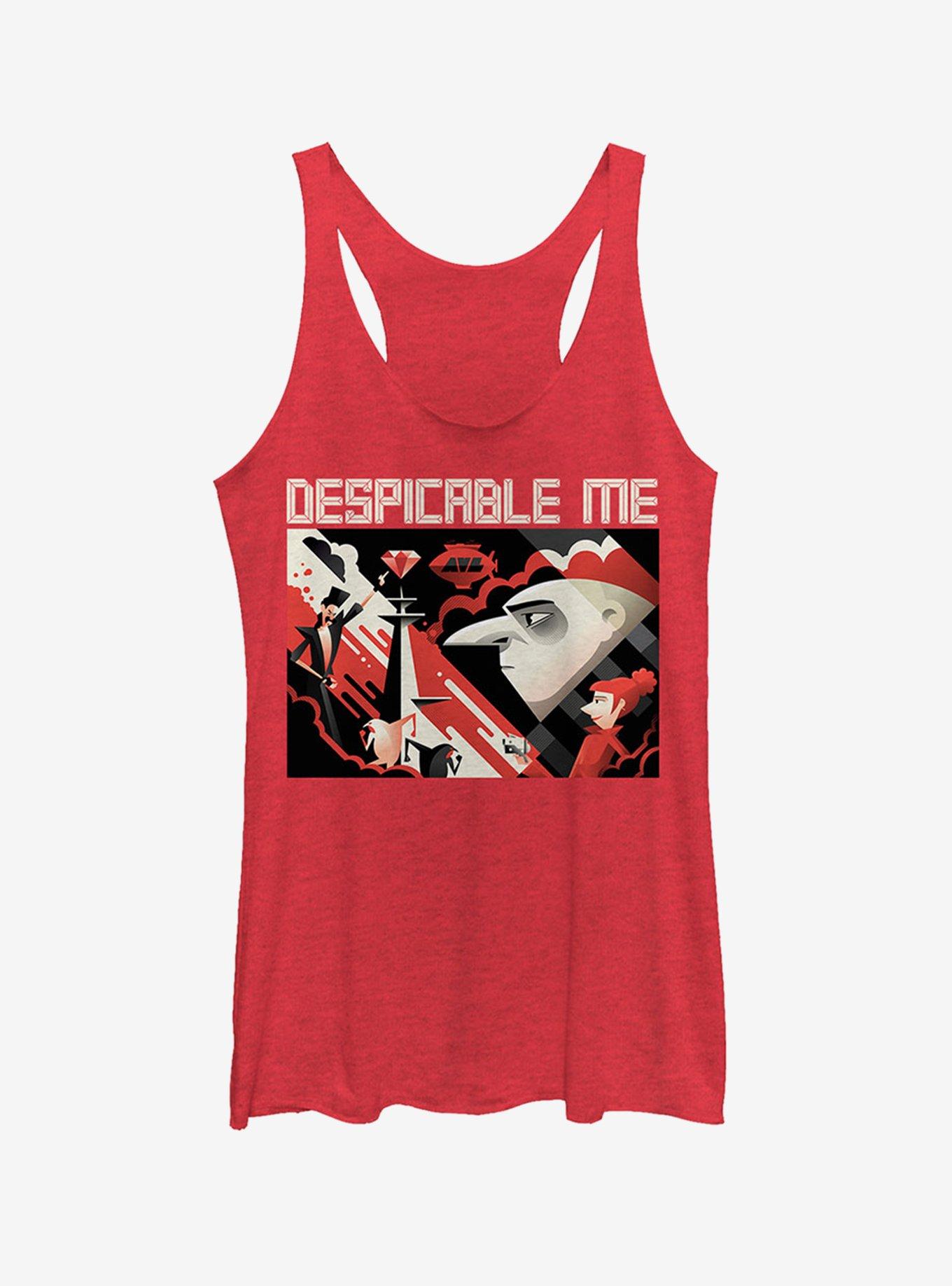 Help Gru save the world's largest diamond and defeat Balthazar Bratt with the help of the Despicable Me 3 Modern Gru Scene Juniors' Racerback Tank Top. A cool modern graphic shows off Bratt, Gru, and Lucy across this unique fitted Despicable Me tank top.