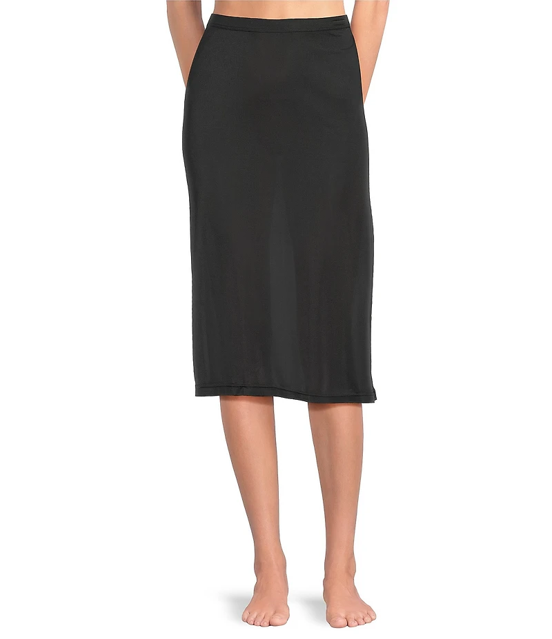 From Modern Movement, this half slip features: Soft & cool to the touch fabrication Antistatic properties to prevent clinging Elastic back for comfortable fit Pull-on construction Approx. 29" length Polyester Hand wash Imported.