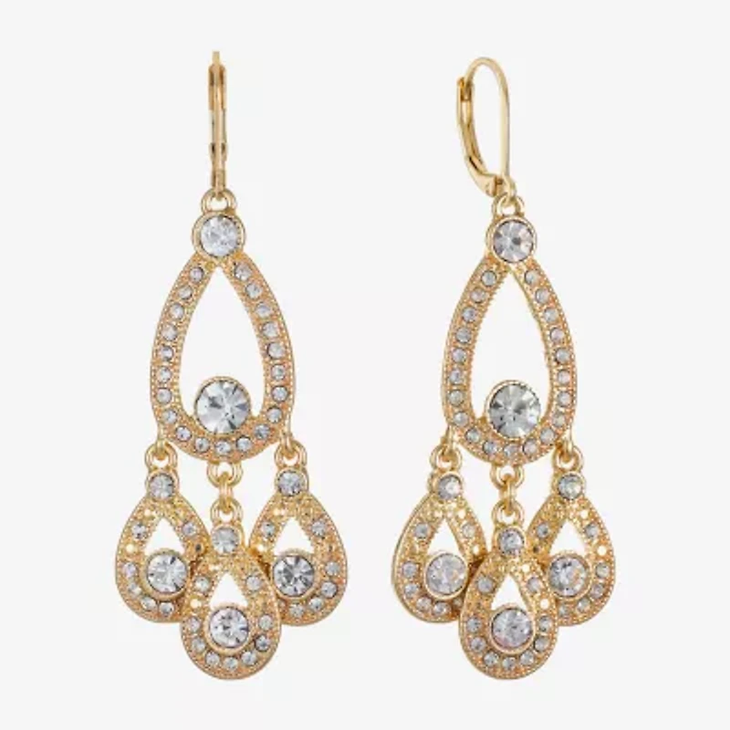 Monet Jewelry Gold Tone Womens White Chandelier Earrings