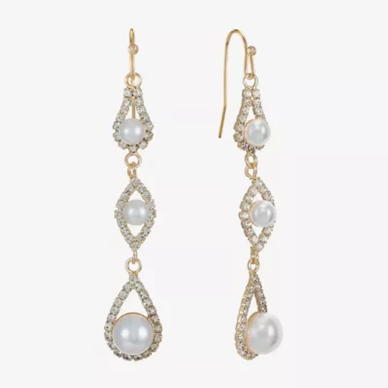 Monet Jewelry Timeless Gold Tone Womens Glass Simulated Pearl Drop Earrings