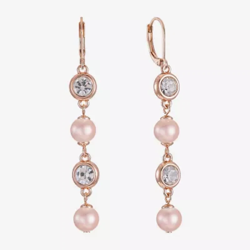 Monet Jewelry Womens Glass Simulated Pearl Round Drop Earrings