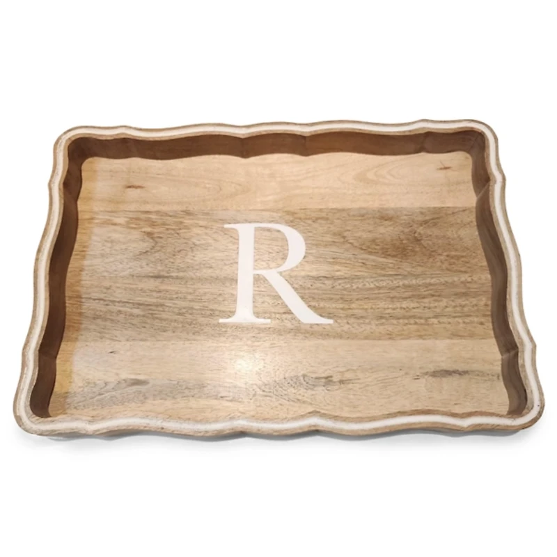 Add a warm, personal touch to your home with this beautifully crafted Monogram R Natural Wood Scalloped Tray! This tray features a charming scalloped edge and a bold monogram letter at the center, making it as decorative as it is functional. Tray measures 18L x 12W x 2H in. Crafted of wood Natural finish Features the monogram "R" in white Scalloped trim with white accent For decorative use only Care: Wipe with a soft, dry cloth. Contact your local Kirkland's store for availability. Quantities and selection may vary by location.
