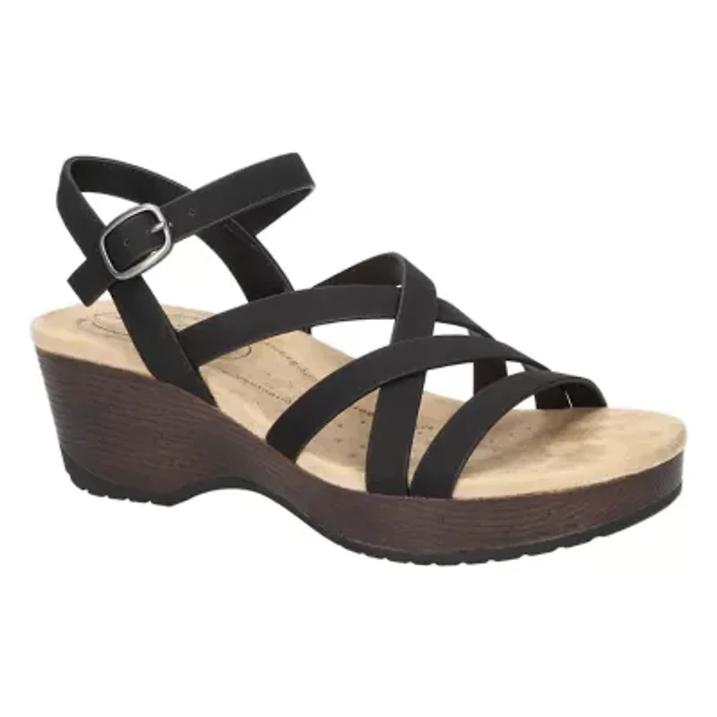 Step into warm weather with comfort in the Monroe strappy slip-resistant sandal from Easy Works by Easy Street. This sandal is designed to combine style and comfort, featuring contemporary crossover straps and an adjustable buckle for a custom fit. The anti-microbial comfort insole and platform block heel outsole keeps you comfortable for your busy days on the go. Buckle closure Padded insole China Imported Product Specifications 2 M Material Faux Leather