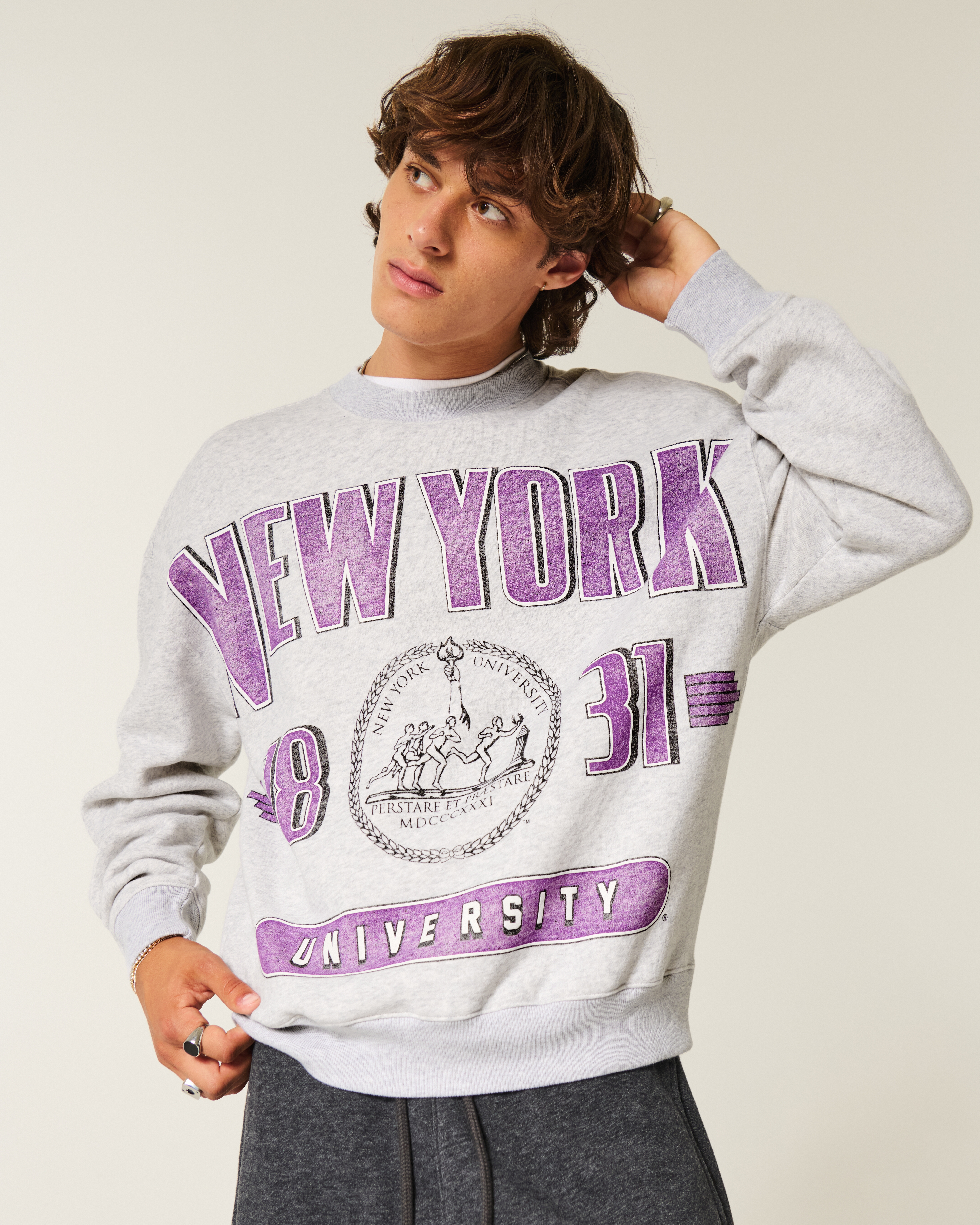 Boxy New York University Violets Graphic Crew Sweatshirt