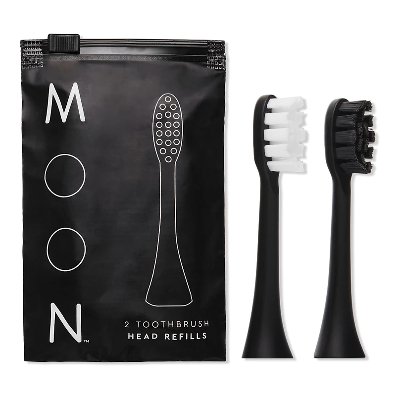 MOON ELECTRIC BRUSH REPLC HEADS 22 2CT. Benefits: Pairs with Moon Electric Toothbrush. Bristles last 4x longer than natural toothbrush bristles. One with black bristles and one with white bristles. Tapered, ultra-fine bristles that reach deeper for a better clean and whiter teeth. 2-Pack interchangeable brush head refill. Formulated Without: Parabens. Artificial Flavors. SLS/SLES. Includes: 2 Interchangeable brush heads (white and black) featuring cutting-edge, ultra-strong bristles with a superfine feel..