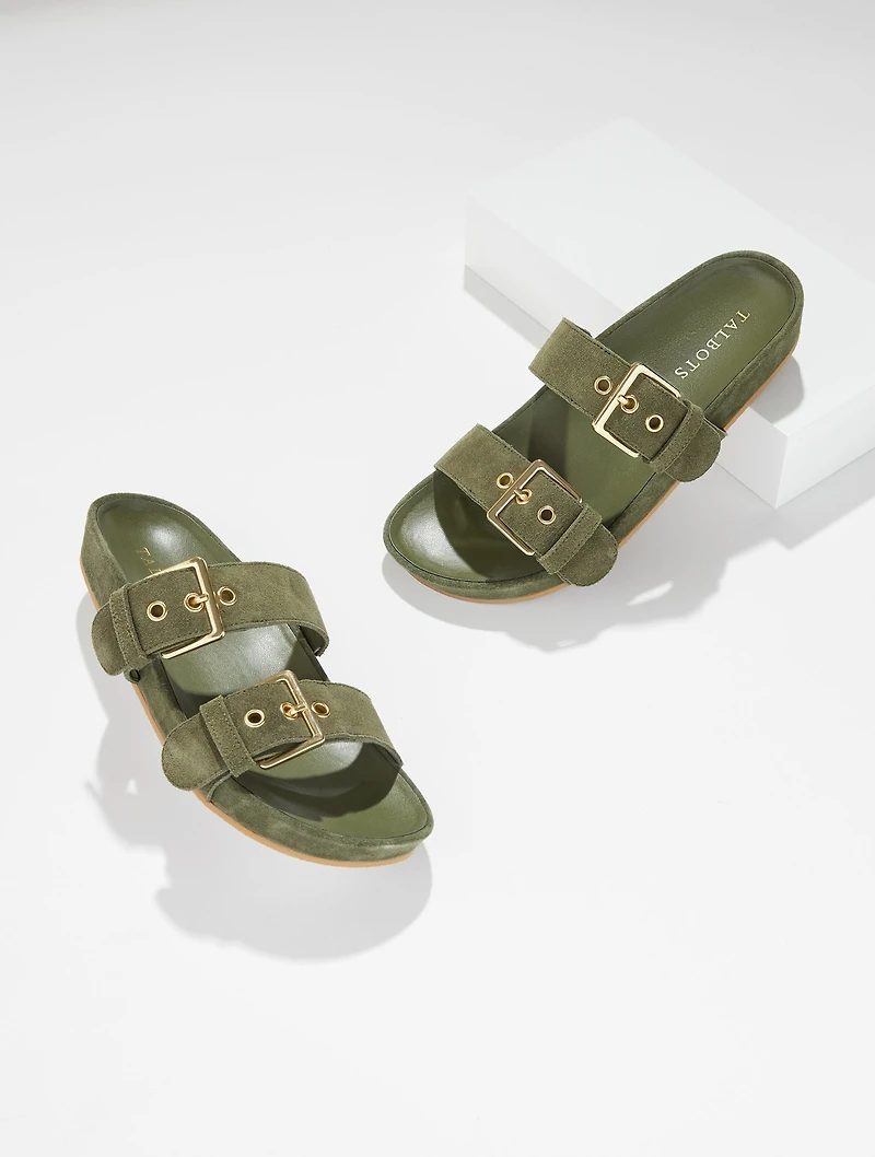 A soon-to-be everyday staple! Rich suede complements our weekend-ready sandals. Enhanced with a comfortable memory foam footbed. Heel and arch padding for extra support. Flexible outsole for improved stability.