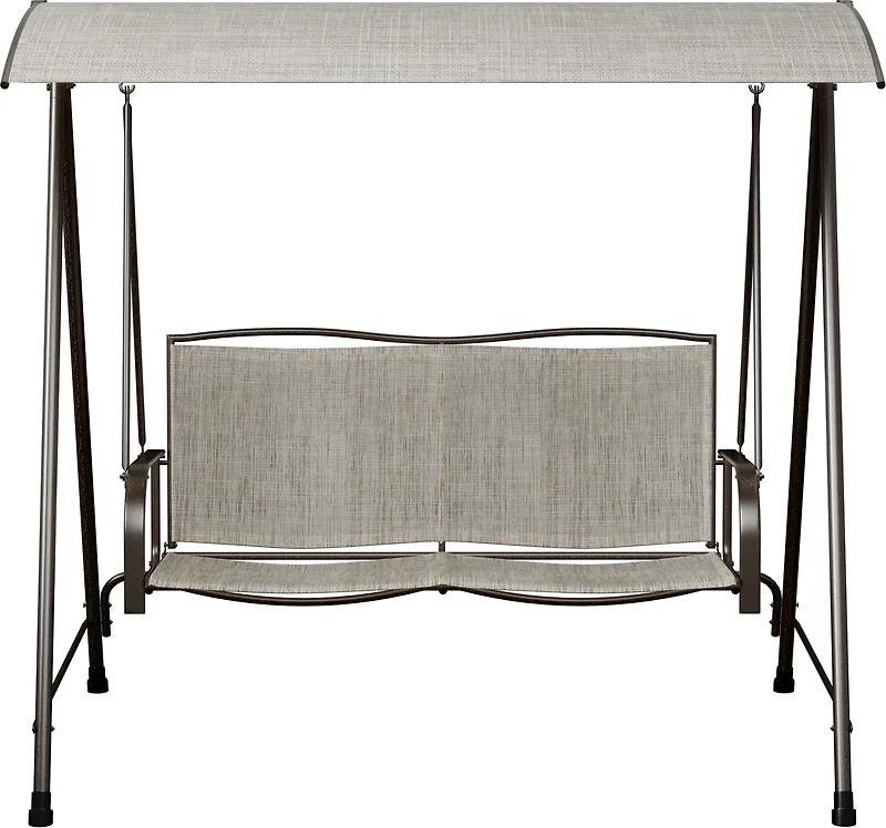 Elevate your backyard living space with the Mosaic Patio Swing. The powder coated steel frame encourages durability for lasting use. The sling seat and back fabric offers breathable comfort. The 46-inch extra wide sitting area allows for a comfortable seating experience, while the adjustable polyester canopy top with a UV and water resistant finish provides cooling shade and protective coverage from the elements. 600-pound weight capacity.