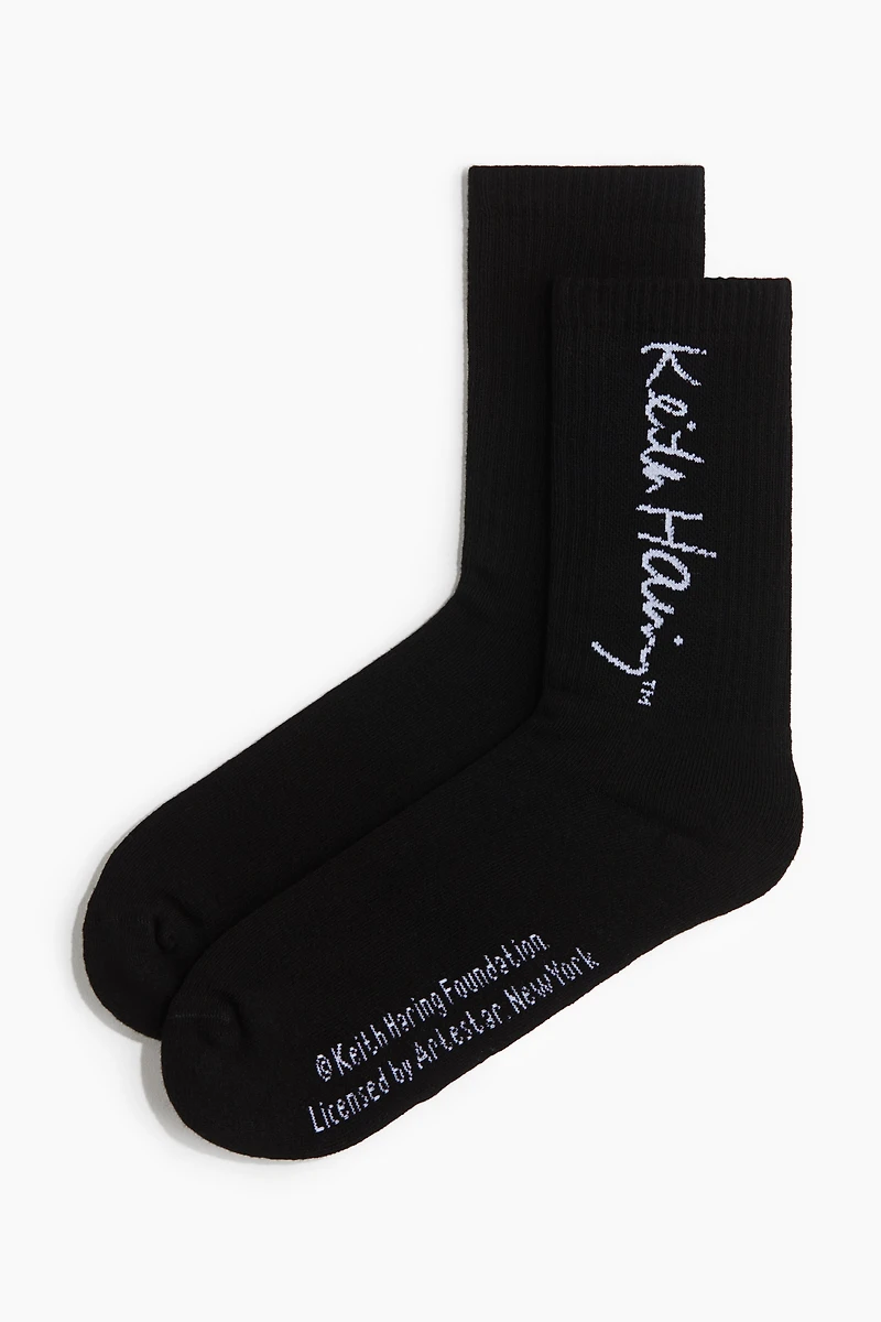 Fine-knit socks in a soft cotton blend with a motif. High, ribbed leg section.