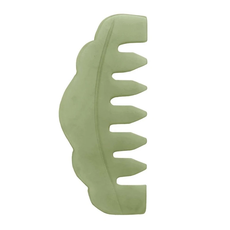 . Benefits: Helps stimulate and support scalp and hair health. Reduces tension and eases stress through gentle massage. Promotes relaxation and grounding during daily rituals. Helps release buildup at the scalp for a refreshed, balanced feeling. Encourages overall energy flow according to Traditional Chinese Medicine principles. Features: Hand-carved from genuine, high-quality jade with natural cooling properties. Designed with wider teeth to accommodate all hair types. Ergonomic shape for comfortable use and effortless scalp stimulation. Durable, smooth finish for a luxurious, long-lasting experience. Includes: Made with authentic jade, the Stone of Eternal Youth. Jade is cherished for its naturally cooling properties and its symbolic connection to balance and harmony..
