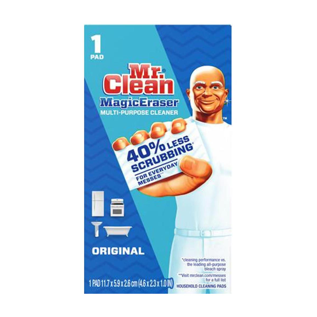 Discover the powerful cleaning magic of the Mr. Clean Magic Eraser Original in a convenient 3-pack. These multi-purpose cleaning pads are infused with a foamy cleansing action that tackles the toughest grime and stains with ease. Say goodbye to hard scrubbing—these erasers work wonders with 40% less effort than traditional cleaning methods. Each pad in the 3-pack measures 11.7 x 5.9 x 2.6 cm, making them the ideal size for gripping and maneuvering around surfaces such as countertops, appliances, bathroom fixtures, and walls. Whether it's scuff marks, crayon scribbles, or tough dirt, the Mr. Clean Magic Eraser effortlessly lifts away messes without the need for harsh chemicals. Simply wet with water, squeeze, and gently rub over the mark or stain to reveal a clean and refreshed surface. Designed for everyday messes, these durable foam pads activate with water and are perfect for both indoor and outdoor cleaning tasks. The original version is a versatile choice for a multitude of surfaces, ensuring your home stays spotless with minimal effort. Keep your living spaces immaculate with the trusted power of Mr. Clean Magic Eraser Original. It's not just a cleaning tool; it's a time-saver that makes maintaining a clean home simpler and more efficient. Grab your 3-pack today and experience the magic for yourself!