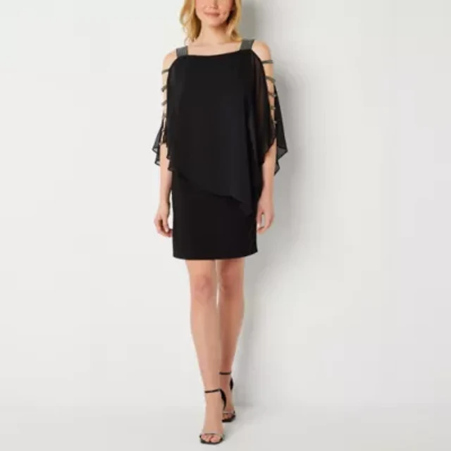 MSK Womens Elbow Sleeve Overlay Sheath Dress