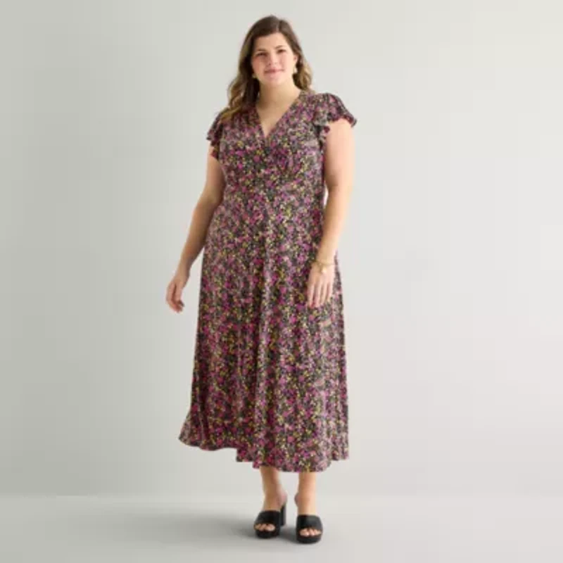 MSK Womens Plus Short Sleeve Floral Maxi Dress in Chattanooga, TN
