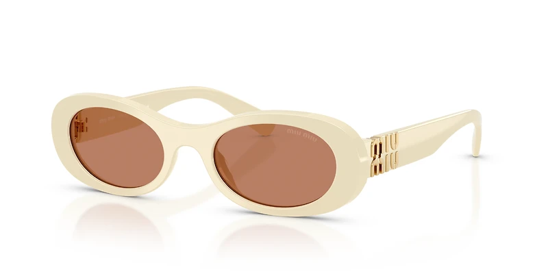 Elevate your style with Miu Miu MU 06ZS sunglasses, a must-have for those who love fashion-forward accessories. These solid brown lenses with oval frames exude elegance and sophistication. The milk-colored frame adds a touch of uniqueness to this timeless design. Crafted from premium quality materials, these shades offer both comfort and durability so you can wear them all day long without feeling any discomfort on your skin or eyes.