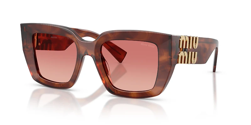 Embrace modern elegance with the Miu Miu MU B05S sunglasses. The square frames, crafted in polished brown acetate, deliver sharp angles for a structured, contemporary look. Paired with gradient pink lenses and metal temples for a chic finish, they exude refinement with a daring edge. A bold vertical logo on the oversized temples celebrates Miu Miu's distinctive style. These brown gradient sunglasses are perfect for adding definition and personality to any outfit.