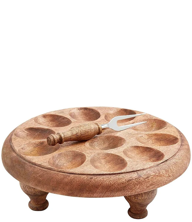 Mud Pie Farmhouse Wood Pedestal Deviled Egg Tray Set