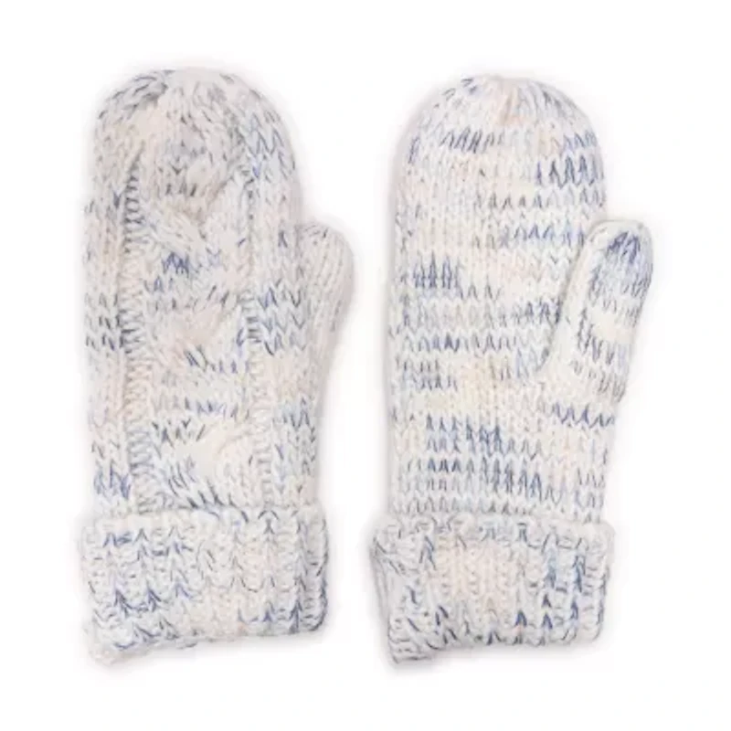 Top off your winter look with the Muk Luks color block stripe cable mitten! Featuring a marled knit pattern with ribbed cuff, these mittens pair perfectly with matching cap. The ribbed cuff ensures a snug fit, while the lightweight yet warm faux sherpa lining keeps you cozy. One size fits most, making it the perfect fun and stylish accessory for everyone!