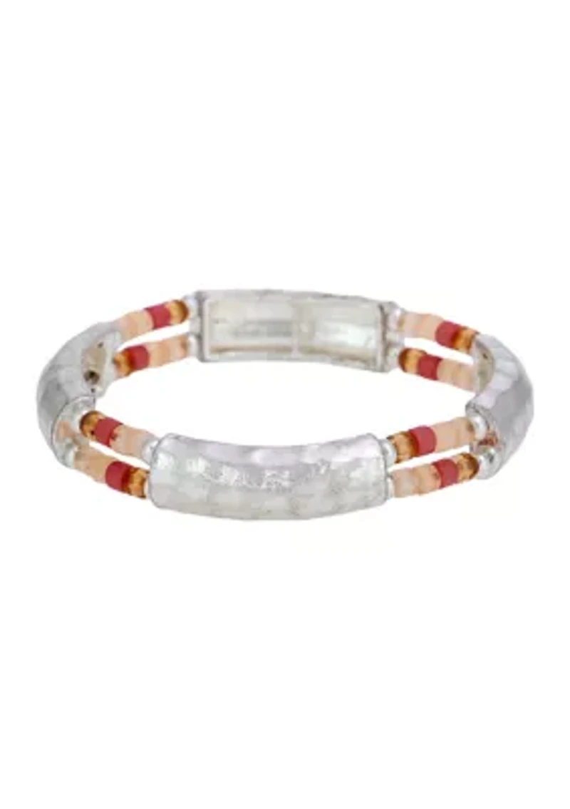 Multi Beaded Silver Tone Stretch Bangle Bracelet
