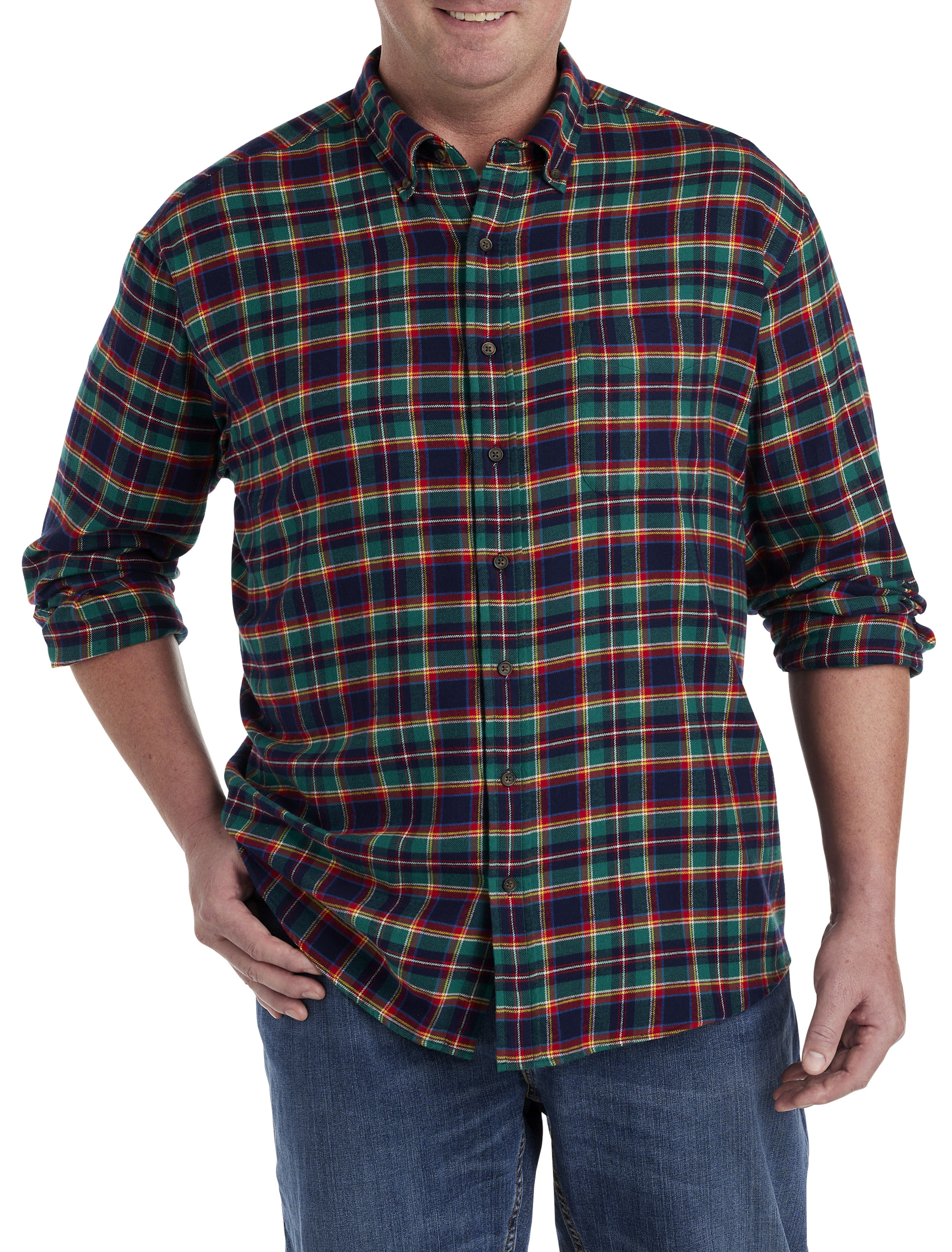 This plaid flannel sport shirt is a versatile must have, this season's essential look, and a cool-weather classic. The cozy warmth and casual comfort makes it hard to resist. In a new, colorful plaid color palette, it's crafted inbreathable cotton with a roomy fit that layers comfortably over your favorite tees. It's a style you'll only find here at DXL in proper proportions that are made to fit and flatter Big and Tall guys. Pair it with jeans for a complete, casual look.