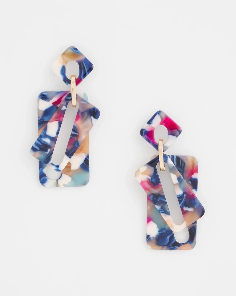 The eye-catching geometric shape and range of colors help define these Multi Resin Rectangle Earrings. Featuring Chico's proprietary No Droop® technology to create statement styles without the weight.\t
