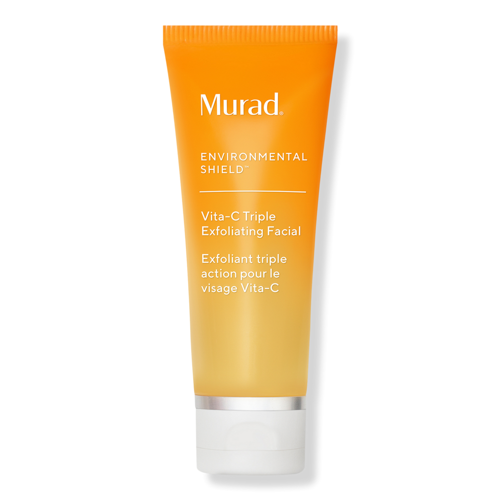 VITA C TRIPLE EXFOLIATING FACIAL 2.7OZ. Benefits: Gently but effectively sloughs off dead skin cells. Reinvigorates dull-looking skin. Instantly smooths texture. Results comparable to a microdermabrasion facial. Color-changing formula indicates even application to make exfoliation an effective and gentle experience every time. Key Ingredients: Gold-stabilized vitamin C, with 55% more antioxidant power than traditional vitamin C, supports healthier-looking skin and a brighter, more even tone. Physical Exfoliant: micro-mineral exfoliants remove dead surface cells to dramatically smooth. Enzymatic Exfoliant: high-performing enzymes dissolve oil debris and dulling dead cells to reveal fresh, radiant skin. Chemical Exfoliant: glycolic, lactic and salicylic acids exfoliate, brighten and purify pores. Research Results: Clinically proven to smooth texture as effectively as a microdermabrasion facial in one use. 87% saw brighter skin and 97% saw smoother skin*. 97% agree product was gentle on skin**. 81% saw more even tone and less visible dark spots**. 81% saw healthier-looking skin**. 78% saw pores appear minimized**. *With 2 weeks of continued use. **With 4 weeks of continued use.