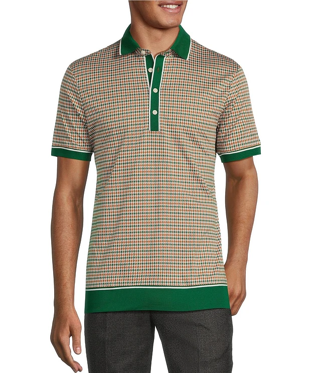 Murano Big & Tall Prehistoric Prep Collection Slim Fit Houndstooth Short Sleeve Polo Shirt