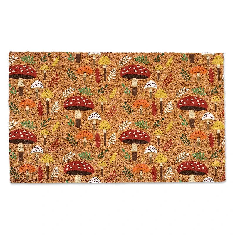 Add a harvest touch to your front porch this fall season with this festive coir doormat. Designed and printed in the United States on quality materials, this is an item you’re sure to love. Welcome your guests into your home in style with these doormats that are UV printed on premium quality coir.Details:Multicolor mushroom print on natural coir30" x 18" Single sided print Water and mildew resistantCoir with vinyl backingTo maintain vivid colors, avoid direct exposure to sunlightFor outdoor use