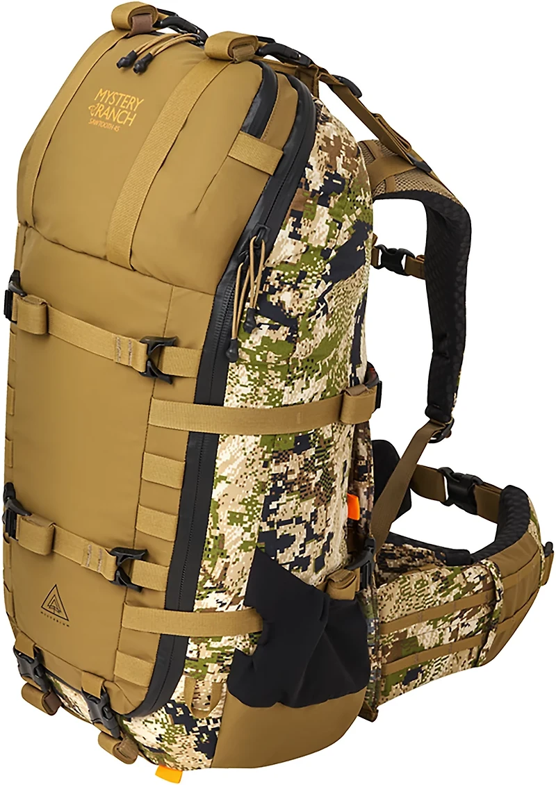 Load up for the hunt with the Mystery Ranch Women's Sawtooth 45 Camo Hunting Backpack. The 330 HT cordura 5PM and 330D robic kodra ripstop fabric affords durability, while the large main compartment offers ample storage space. Front and internal mesh pockets keep your gear organized, and the MYSTERIUM frame assists in lightweight carrying.