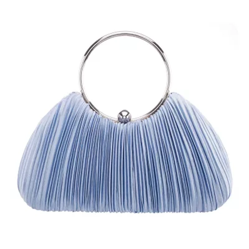 Zaylee is a pleated frame bag with a chic circular metal handle - and a drop in chain when you want to go hands-free.