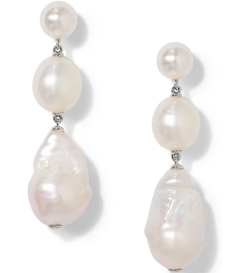 From Nadri, these earrings feature: Linear earrings Rhodium-plated brass Freshwater pearl 10-11mm, 18-22mm, 8mm, glass Post closure Approx. 1.875" drop Imported.