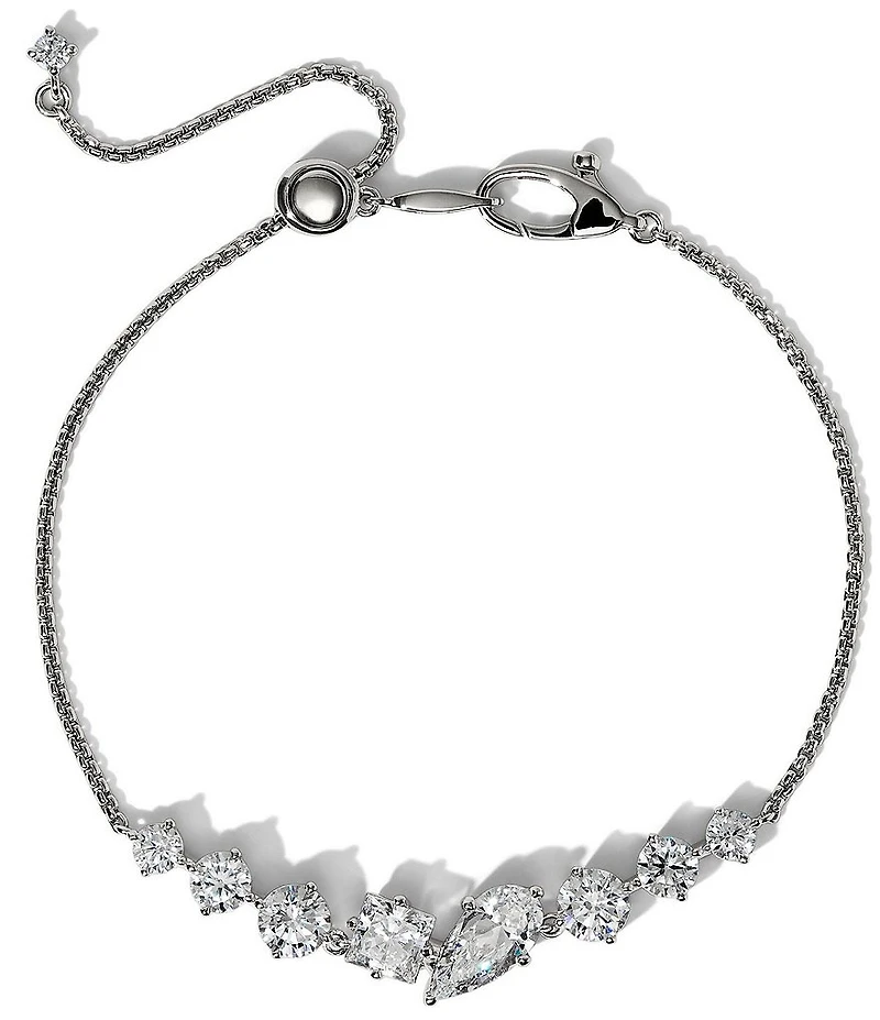 From Nadri, this bracelet features: Adjustable bracelet Silver plated brass / CZ Lobster clasp closure Approx. 7.95" length Imported.