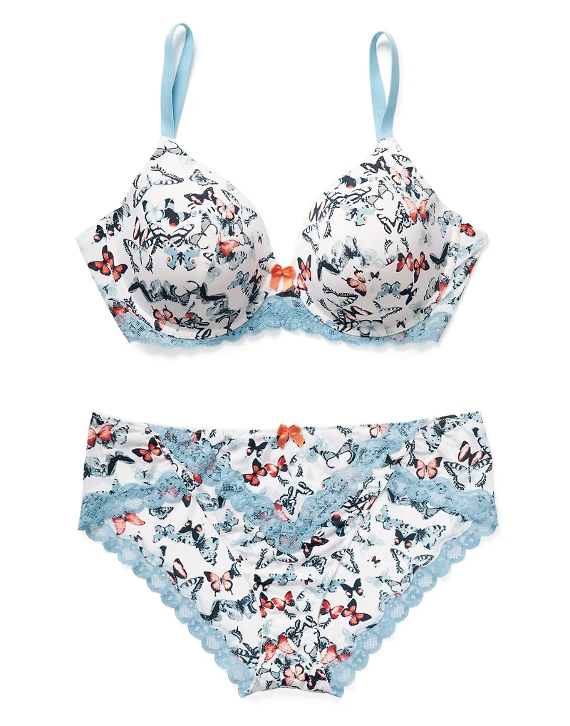 Looking for the perfect summer bra? Just wing it! Our butterfly print makes its debut in a contour full-coverage bra that’s here to fit you beautifully. Designed with super-smooth cups and decorated with pretty lace-trim details, Nare will have you confidently channeling the best of the outdoors! Simply pair it with the matching hipster or thong, and you’ll be all set to take flight.