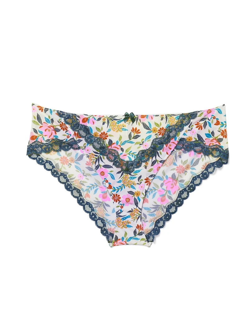 The Nare Hipster Floral White 3 micro hipster is a romantic-basics favorite. Effortlessly charming, it features a Hipster Panty, Lace Trim, and Satin Bow for a sweet, feminine touch. (Available in sizes M-4X.)