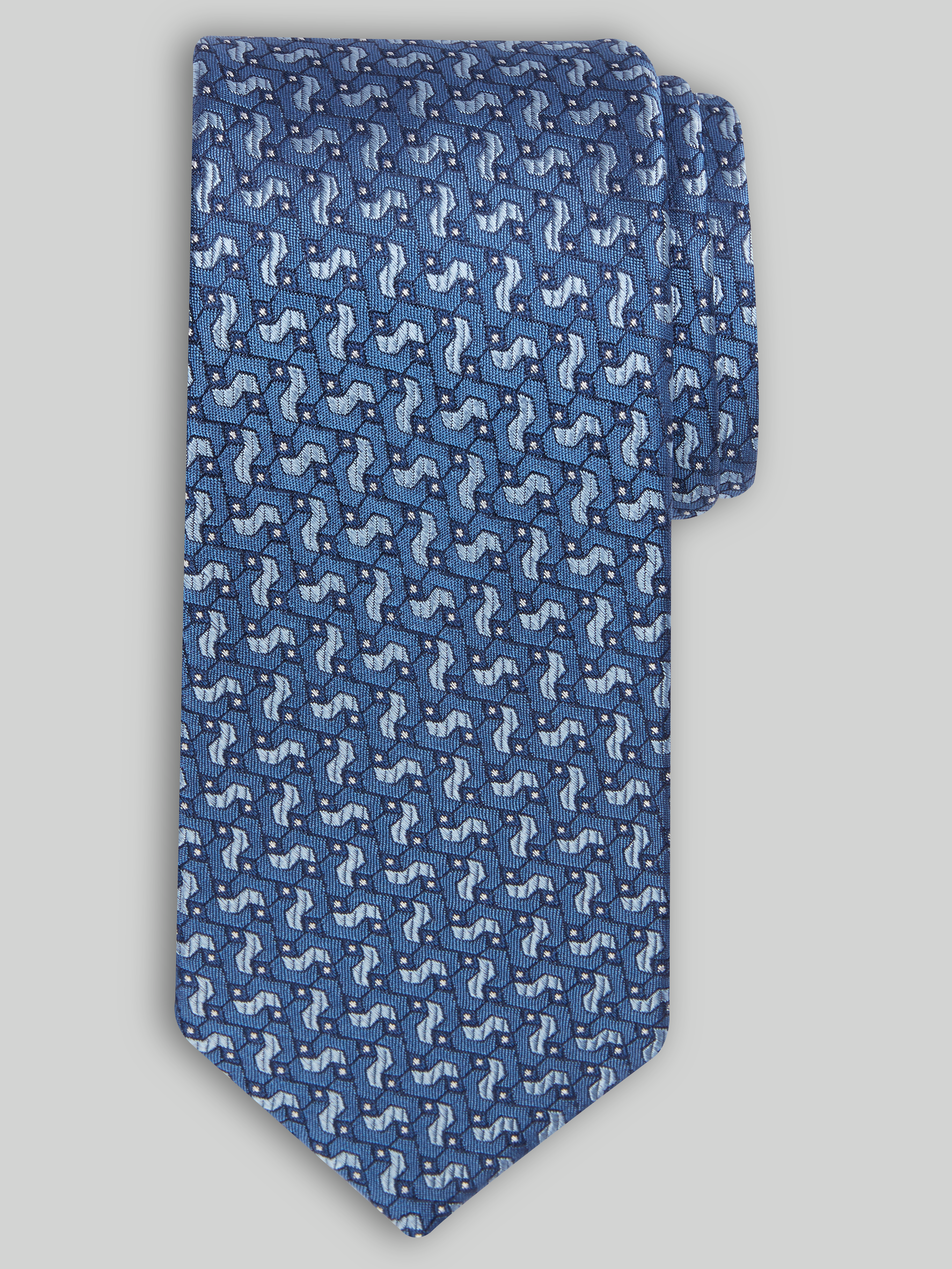 This tie dazzles with an eye-catching, geometric puzzle piece design. By Joseph Abboud, this dress-wear essential is woven from fine silk to create an array of engaging and elegant looks.