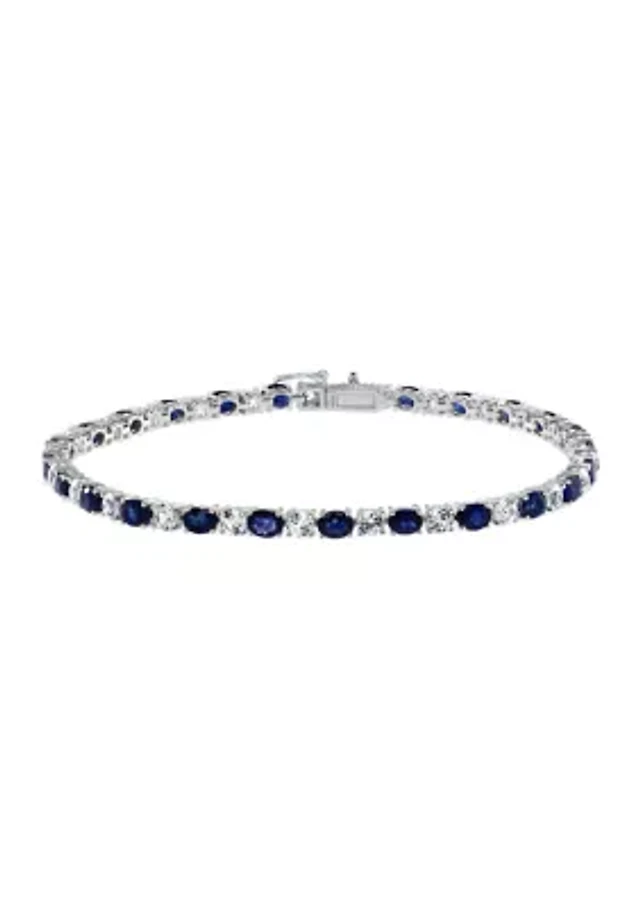 Lab-Created Blue and White Sapphire Tennis Bracelet in Sterling Silver - 7.25"