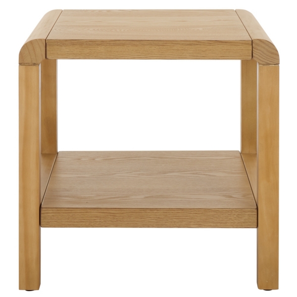 Gentle curves and a sleek frame create the simple yet sophisticated look of the Natural Wood 1-Shelf Tillie Accent Table. The natural finish lightens up any room while seamlessly blending with your decor. Overall dimensions Width: 19.8 in. Depth: 19.8 in. Height: 19.8 in. Crafted of pine and ash wood veneer MDF Natural finish Features one (1) shelf Curved edges Hues of tan Weight: 15 lbs. Weight capacity: 100 lbs. Assembly required Not intended for commercial use Care: Dust with a soft, dry cloth. Avoid common hazards such as hot dishes, harsh solvents, and abrasives. Adhesive felt pads to protect flooring are recommended. This item is available at Kirklands.com only, not available in stores. Please note: this item cannot be shipped to APO/FPO addresses.