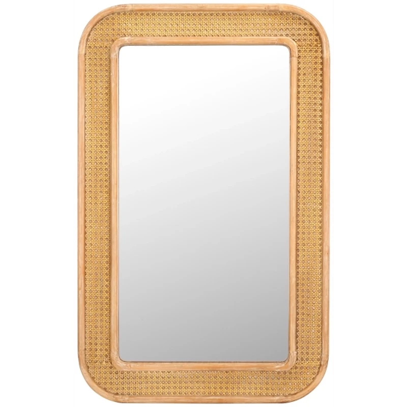 This Natural Wood and Rattan Alessa Wall Mirror is the perfect blend of casual and refined. This mirror features smooth, rounded wood corners and a natural rattan border to elevate your space with texture and dimension! Overall dimensions: 23.75W x 1.38D x 38H in. Mirror measures 16.06W x 30.28H in. Frame crafted of wood Natural finish Features a rectangular shape with rounded corners Accented with a rattan border Weight: 14.08 lbs. Care: Dust with a soft, dry cloth. To clean mirror, spray a small amount of glass cleaner onto a lint-free cloth and wipe clean. This item is available at Kirklands.com only, not available in stores. Please note: this item cannot be shipped to APO/FPO addresses.