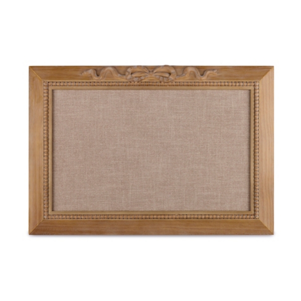 Personalize your space by displaying photos, notes, and other mementos on this Natural Wood Bow Detail Pinboard. It adds a fun and functional touch to any room! Overall dimensions Width: 29 in. Depth: 2 in. Height: 20 in. Crafted of wood Natural frame finish Beaded frame Gray board finish Features a bow accent Includes six (6) gold, bow shaped pins Weight: 7.8 lbs. Hangs from back-mounted hardware Care: Dust with a soft, dry cloth. Contact your local Kirkland's store for availability. Quantities and selection may vary by location.