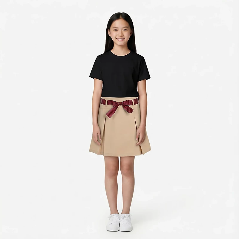 To add a stylish look to your school uniform, choose the Nautica Girls' 7-20 Pleated Scooter 2 Skort. Featuring an elastic waistband for comfortable wear, this skort comes with unique details such as inverted pleats, a striped bow and a striped ribbon belt. The skort is made of polyester for durability and all-day wear.