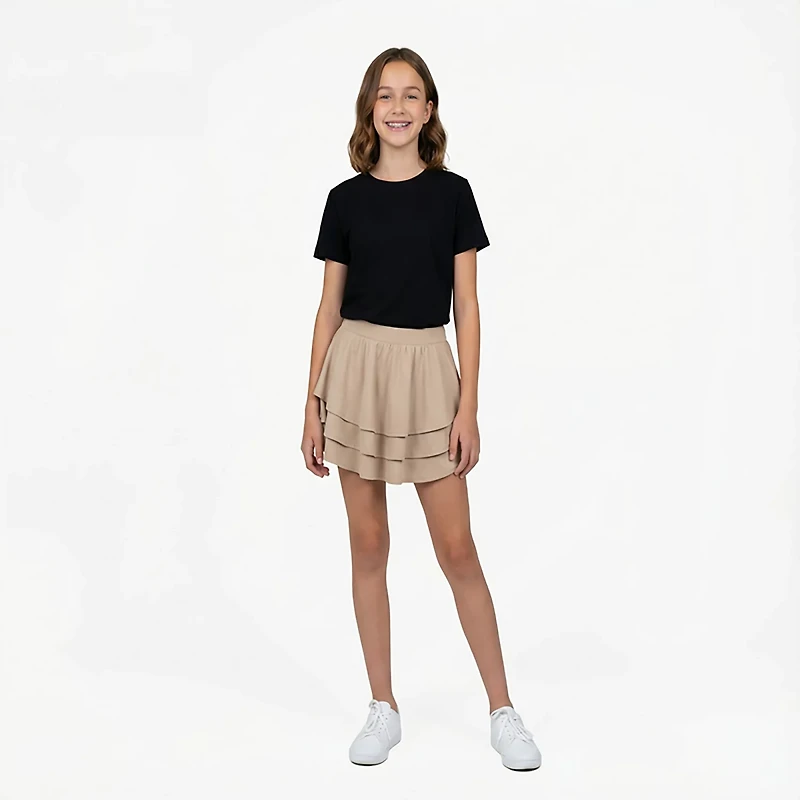 Stay comfortable in every class wearing the Nautica Girls' Plus Pindot Mesh Ruffle Scooter Skort. The 100% polyester mesh construction ensures a soft feel and coolness, and the ruffled design expresses an eye-catching appearance. The waistband promotes mobility, and the shorts beneath the skirt make sure you stay covered.