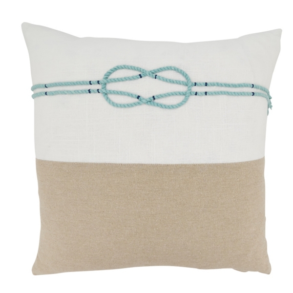 Add a subtle coastal touch to your space with this Nautical Knot Throw Pillow! With a pop of blue against a neutral background, this pillow is perfect for setting sail with a splash of seaside charm! Pillow measures 18L x 18H in. Crafted of 100% cotton with polyfill insert Features embroidered and woven fabric details Nautical knot design Hues of blue, tan and white Zipper closure Solid reverse Care: Dry clean only, medium iron reverse side. This item is available at Kirklands.com only, not available in stores. Please note: this item cannot be shipped to APO/FPO addresses.