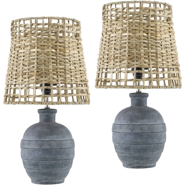 Navy Blue Ceramic 2-pc. Lamps with Seagrass Shades